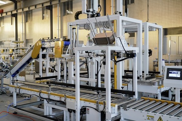 玉米種子包裝線是一條比較典型的自動(dòng)化包裝線體,該線體是由熱熔膠開箱機(jī)、自動(dòng)裝箱機(jī)、熱熔膠封箱機(jī)、稱重剔除機(jī)、貼標(biāo)機(jī)以及動(dòng)力輸送機(jī)組成。同時(shí)該機(jī)還應(yīng)客戶要求,在裝箱工位增加了自動(dòng)放置墊板工序,使得整條線體的包裝流程更加智能更加流暢。